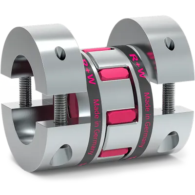 - Fuldt delte nav: Koblingen har to koncentrisk bearbejdede nav med buede kæber og en spændeskrue på hver side. Dette design giver mulighed for nem og bekvem montering.
