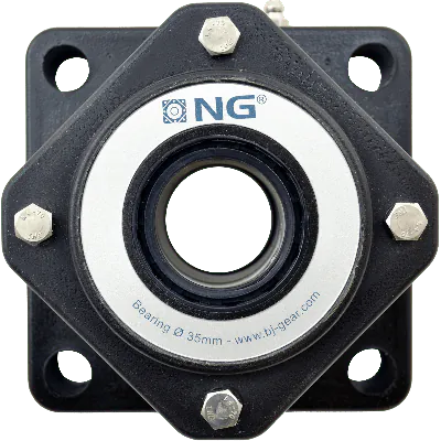 NG35F41NG35F41 er et slidstærkt og hygiejnisk flangeleje, udviklet til krævende applikationer. Med 4-bolts flange-design og lukket endelåg giver det effektiv beskyttelse mod snavs og fugt. Lejet har et polyurethan-hus, som er modstandsdygtigt over for korrosion, kemikalier og mekanisk belastning – perfekt til miljøer med hyppig rengøring.