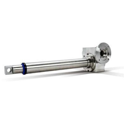 Der Aktuator besteht vollständig aus Edelstahl (EN 1.4301 / AISI 304) und wurde gemäß den Anforderungen der EN 1672-2 für hygienisches Design entwickelt. Die IP69K-Schutzart ermöglicht eine Reinigung mit Hochdruck und hoher Temperatur aus allen Richtungen. Dank des modularen Aufbaus können Hublängen (Standard bis 600 mm, längere Hübe auf Anfrage), Motorgrößen, Übersetzungen und Anschlussvarianten flexibel angepasst werden – für zuverlässigen Betrieb, kompakte Integration und einfache Reinigung.