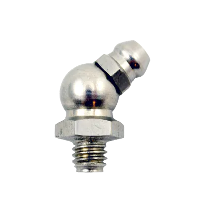 KI820015Der Schmiernippel ist in einem 45° Winkel gefertigt, so dass er auch auf engstem Raum mühelos zugänglich ist. Er ist mit einer M6x1 mm Schraube ausgestattet, um eine nahtlose Integration zu ermöglichen, und seine robuste Edelstahl-Konstruktion garantiert eine dauerhafte Wirksamkeit bei harter Beanspruchung.