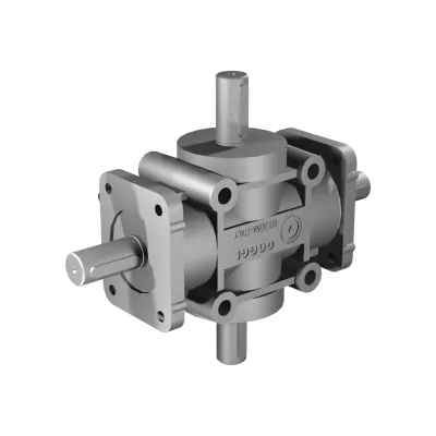 HV3042026121Poggi 2026 Winkelgetriebe, R1:2, Ø24h7, 4-Wege, D1/2. Gebaut mit einem leichten Aluminiumgehäuse - ideal für synchronisierte Achsenanwendungen.