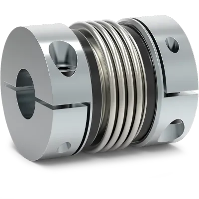- The stainless steel bellows provide flexibility, allowing for angular, axial, and parallel misalignments while maintaining efficient torque transmission.