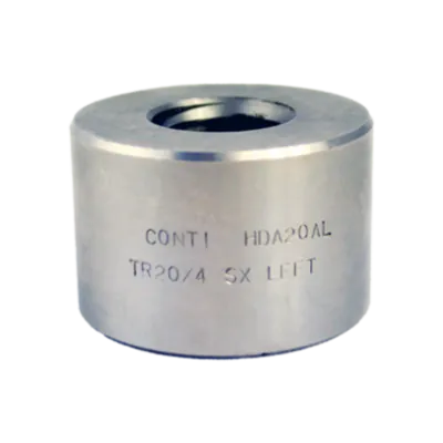 KI600492CONTI HDA Tr 20x4 cylindrical trapezoidal nut, engineered with precision from AISI 303 stainless steel, featuring a left-hand thread for versatile applications. This trapezoidal nut is meticulously crafted to offer durability, corrosion resistance, and reliability in various environments.