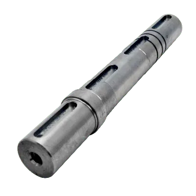 The double shaft acts as a through transmission shaft inside the worm gearbox, transferring torque to connections on both sides of the gearbox housing. It ensures symmetrical load distribution, precise centring and stable power transfer.