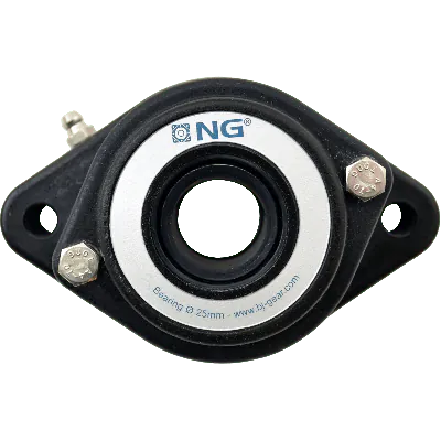 NG25F21The NG25F21 is a compact, robust NG waterproof flange bearing, constructed as a 2-bolt F2 flange unit, designed to ensure precise shaft support and stable alignment for Ø25 mm shafts. With a bolt hole distance of 99 mm, this bearing integrates easily into smaller conveyor systems and processing machinery.