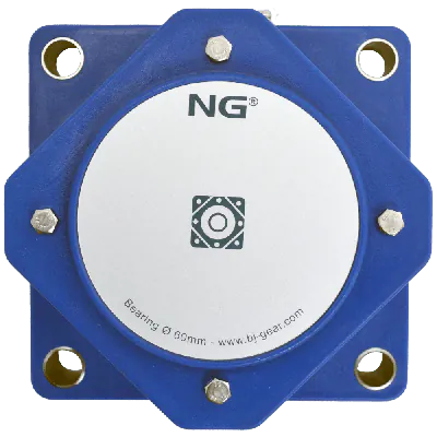 NGB60F40The NG waterproof flange bearing F4 Ø60 with 4-bolts, closed cover design in blue polyurethane (PUR) is engineered for industries where hygiene and durability are essential, such as food processing and other demanding sectors. This bearing is built to withstand harsh conditions while ensuring protection from external contaminants. The closed cover design enhances safety and reliability, while the blue color allows for quick detection of dirt, promoting a clean production environment.