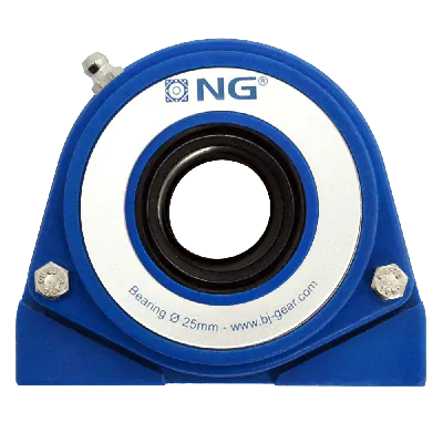 NGB25S21The NG waterproof pillow block bearing with thread S2, designed for a Ø25 shaft and a 2-bolt open cover, is an ideal choice for industries focused on hygiene and resilience, such as food manufacturing. Built from sturdy blue polyurethane (PUR), this bearing housing is engineered to handle tough conditions while resisting corrosion. The open cover makes maintenance and cleaning straightforward, while the blue color enables quick detection of any contaminants, keeping the work area cleaner.